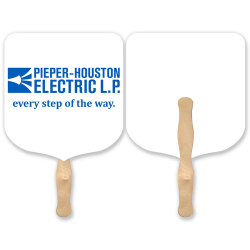 Product Specifications: Size: 8" x 8" Weight: 6.0 pounds per hundred items. Material: Packaging: 10 pieces per poly bag. For individual poly bags and $0.10(v)each. Prop 65: Options: When printing on the back of our single fans allow a 4"H x 1 1/4" W space for handle placement. Production: Normal production - 8 working days. For rush service - (click for details). Printing: Print Area: 6-1/4" x 7-3/4" Imprint covers face of fan. Multi-color: Multi-color and full color printing is available. Add 1 additional color running charge and 1 plate charge for each additional color. For full color add 3 additional color running charges and 3 additional plate charges. Method: Offset Lithography. Print Colors: PMS colors and full-color printing. No charge for PMS spot colors! |